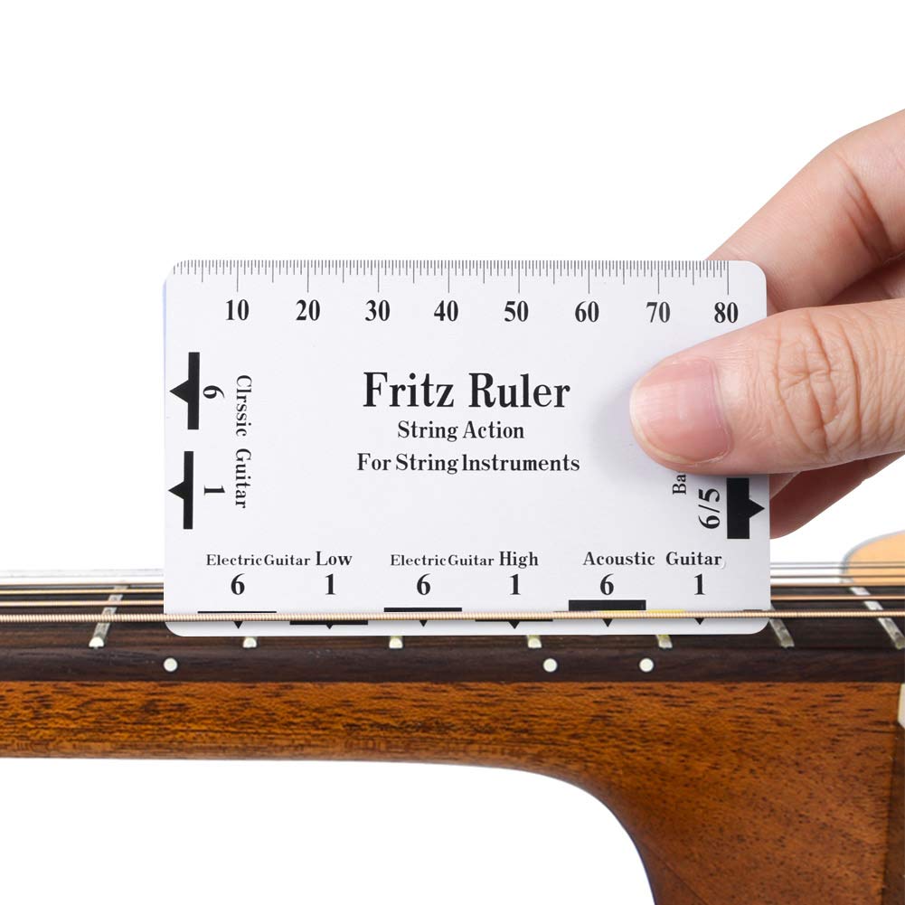 The dunlop action gauge from sweetwater.com is great for this. The main purpose of setting guitar action is to get maximum playability and sound quality out of that instrument. Just make sure you use the same one every time. Start with the neck of the guitar: If you prefer to do the setup yourself, you may require tools like screwdrivers, wire cutters, feeler gauges, nut files, and allen or hex keys. You need to measure the distance between the top of the fret and the bottom of the guitar string. In this article, i will discuss action in more detail…. These are the adjustment of the truss rod and the bridge saddles. Take a reading at the 12th fret from the top of the fret to the bottom of the string on the low e and the high e. They will either adjust the action by tightening the truss rod to straighten out the neck, or adjusting the screws or saddles on your bridge. Generally, fender electric guitars with a 9.5 fingerboard radius come out of the factory with 4/64 between string and fingerboard. Action is a term used to describe the way an instrument is adjusted and how well it plays. If you want to lower the action on an acoustic guitar by filing the notches on the nut, you'll need a set of nut files that corresponds to the gauge of string you're using.